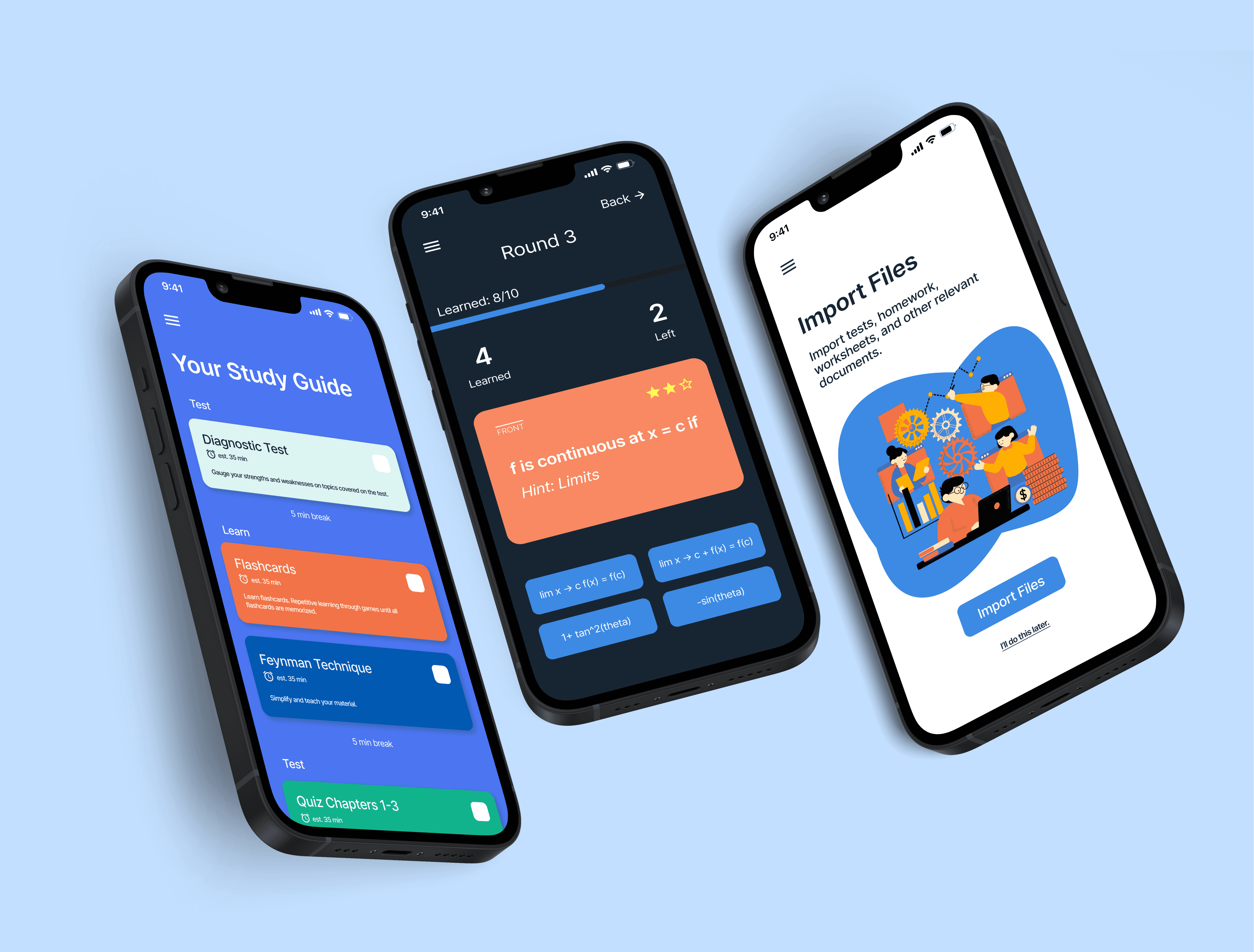 Design an application that helps students learn and memorize while effectively manage their time.